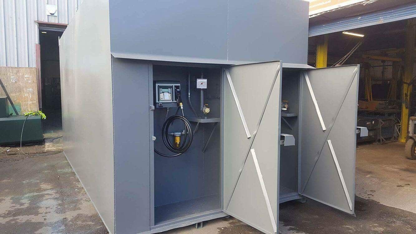 All of our tank fittings, pipework and pumping systems are installed within the lockable cabinet on the tank.