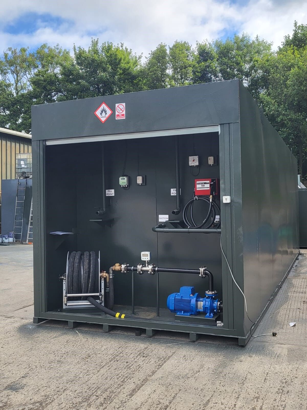 All of our tank fittings, pipework and pumping systems are installed within the lockable cabinet on the tank.